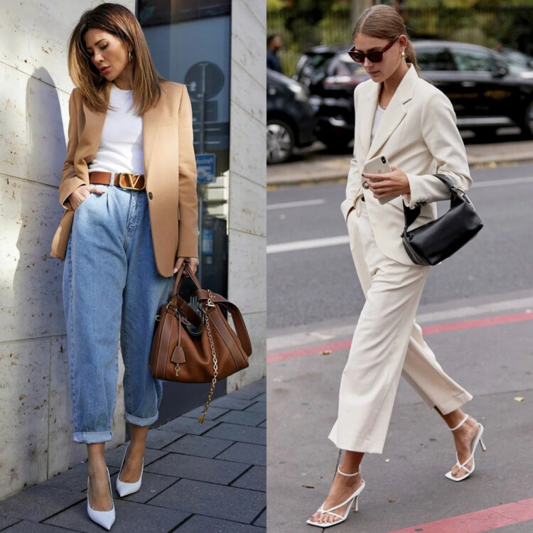 Однобортні жакети. Класичний однобортний жакет вільного силуету – класика і модель поза часом. Величезний плюс однобортних жакетів – вони підходять абсолютно для будь-якої фігури і виглядають чудово на жінках різного віку. Незважаючи на більш класичний крій, однобортні жакети відмінно поєднуються з джинсами, кросівками, футболками та всім, що входить в поняття street style. Модні відтінки: білий, молочний, чорний, карамельний.