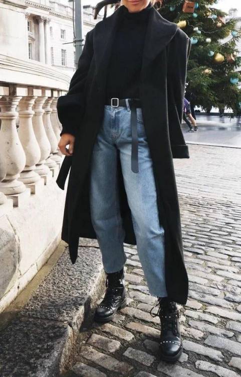 Комбінація, в яку ви неодмінно закохаєтеся з першого погляду, – це джинси + чорне пальто класичного фасону + грубі черевики. Доповніть це поєднання речей об’ємним трикотажним светром або кардиганом і в результаті ви отримаєте повноцінний повсякденний зимовий look на кожен день.