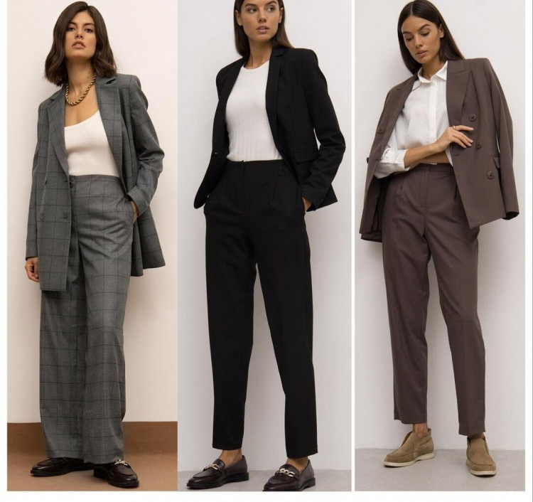 Брючний костюм – абсолютний мастхев для ділового гардероба. Його головна перевага в тому, що костюм можна носити і комплектом, і окремо – поєднуйте брюки з будь-якими блузками і сорочками в вашому гардеробі; носіть піджак як верхній шар в комплектах з будь-якими іншими брюками, спідницями і навіть джинсами, якщо дрес-код в офісі не дуже строгий. В костюмі ви завжди будете виглядати елегантно, дорого і справите правильне враження в професійному плані.