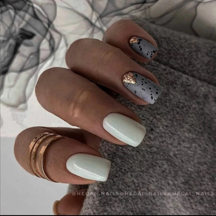 Не менш прекрасною ідеєю можна вважати і сірий лак, який може красуватися на всіх нігтях, створюючи однотонний манікюр.