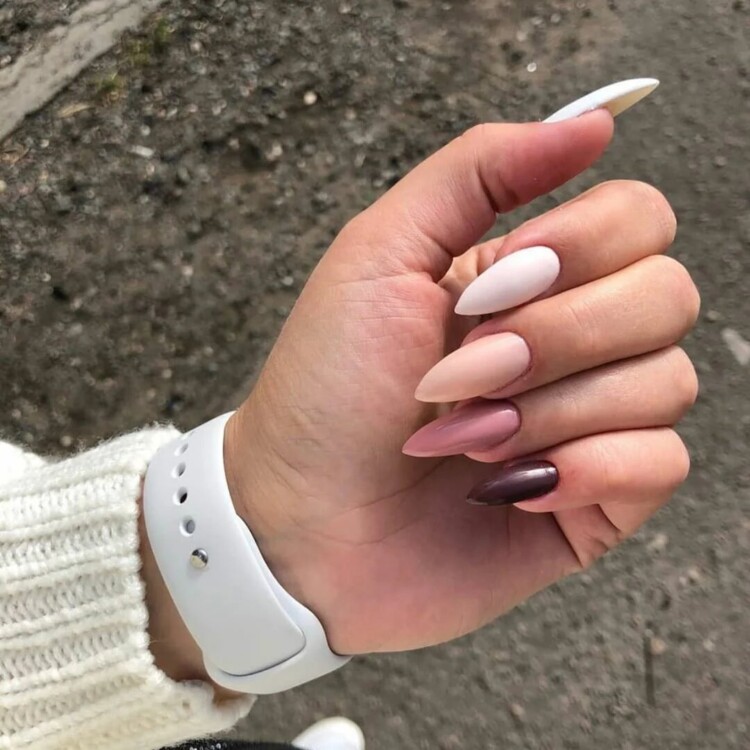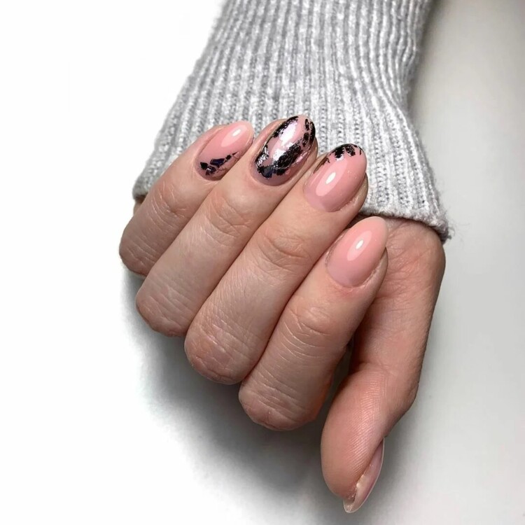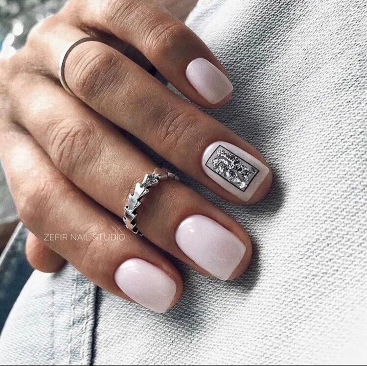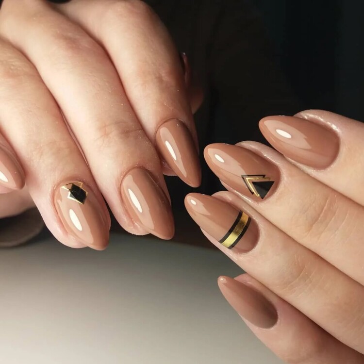 Ще однією чудовою ідеєю ділового манікюру вважається нюдовий однотонний. Бежевий, молочний, коричневий, рожевий – ці тони чудово підходять для створення манікюру, який елегантно доповнить руки жінки.