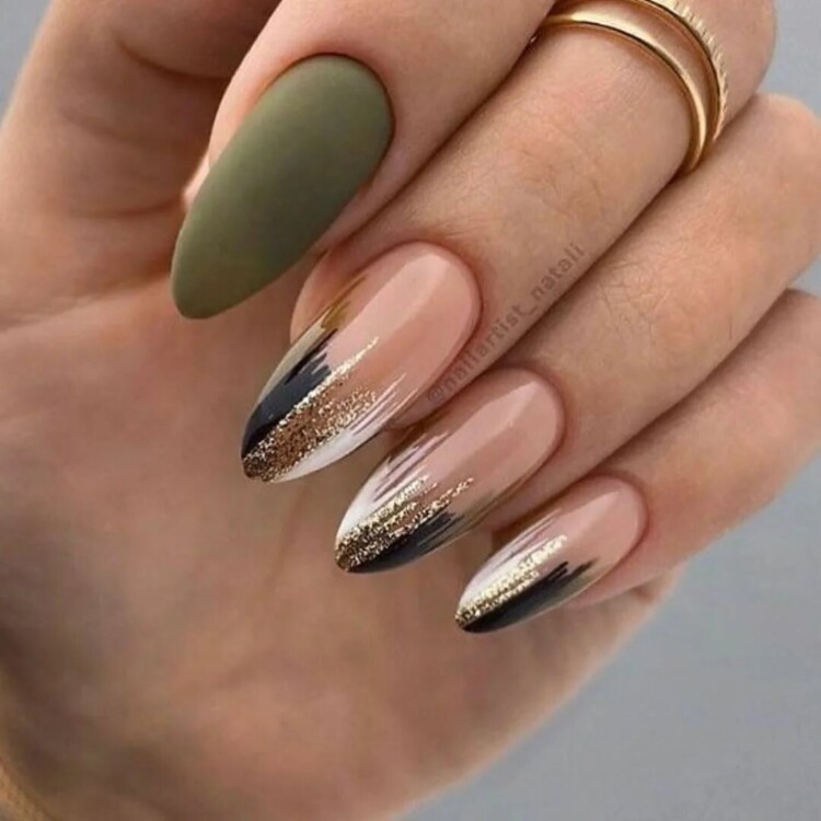 Розбавити дизайн завжди можна лаконічними візерунками або ж декором. Для ділового манікюру найкраще підходять: скотч-стрічка, стрази, фольга, втірка і глітер.