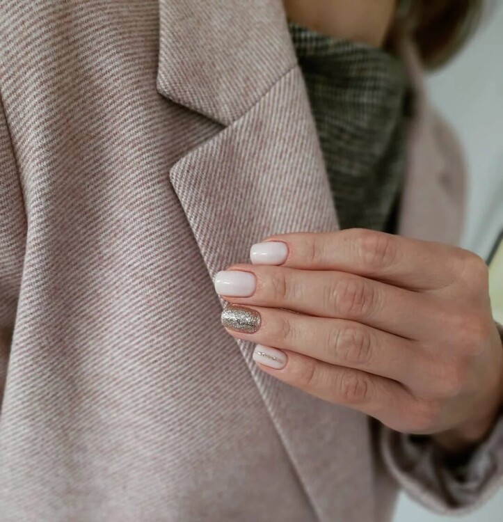 Ще однією чудовою ідеєю ділового манікюру вважається нюдовий однотонний. Бежевий, молочний, коричневий, рожевий – ці тони чудово підходять для створення манікюру, який елегантно доповнить руки жінки.