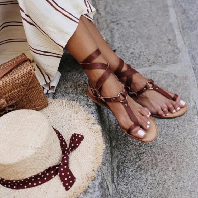 Модні в’єтнамки літа 2020 року мають бути виконані обов’язково зі шкіри та бути на плоскій підошві.