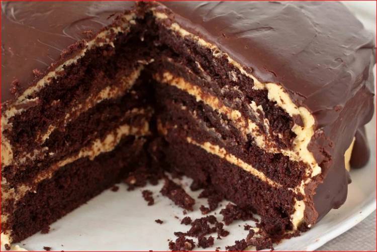 Коли пиріг трохи охолоне, дістати із форми. Розрізати на 2-3 коржі. Зробити кремові прошарки та покрити глазур’ю.