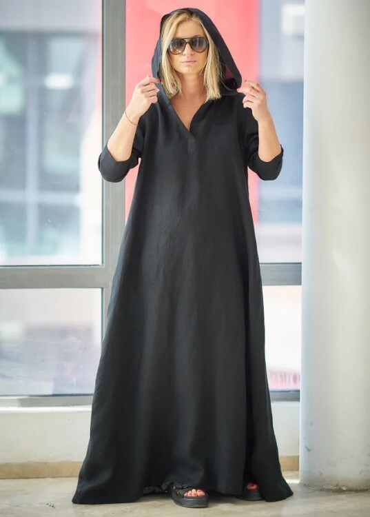 Найбільш простий і часто використовуваний фасон довгої сукні – вільний, трапецієподібний. Він комфортний в носінні, не обмежує рухів, приховує всі «огріхи» фігури і дозволяє себе почувати трохи середньовічною жінкою. Варіантів таких нарядів кілька: проста трапеція, з капюшоном, багатоярусний крій.