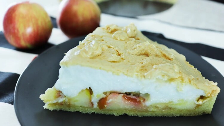 Пиріг готувати легко і з найпростіших продуктів. Виходить дуже ніжний і смачний пиріг, який цілком зможе замінити торт на святковому столі. Пиріг наш буде на пісочному тісті, начинка це карамелізовані яблука, а верхнім шаром стануть найніжніші збиті білки.