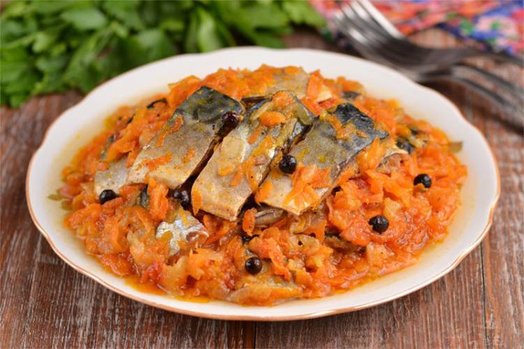 Риба виходить ніжна, але шматочки не розвалюються, і в них не відчуваються дрібні кісточки. Готується страва легко, довго біля плити стояти не треба, а результат просто відмінний. Скумбрію з овочами подаю як другу страву з гарніром (дуже смачно з картопляним пюре), як закуску та ще й таку рибу консервую в банки. Це дуже смачно.