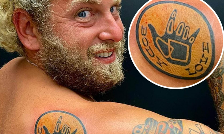 Актор і режисер Джона Гілл опублікував в Instagram пост, в якому показав нове татуювання, яка говорить Body Love, що в перекладі з англійської означає «любов до тіла». Таким чином, він нагадує про важливість прийняття себе. Напис набитий в центрі жовтого кола з рукою – це версія логотипу бренду для серфінгістів Body Glove.