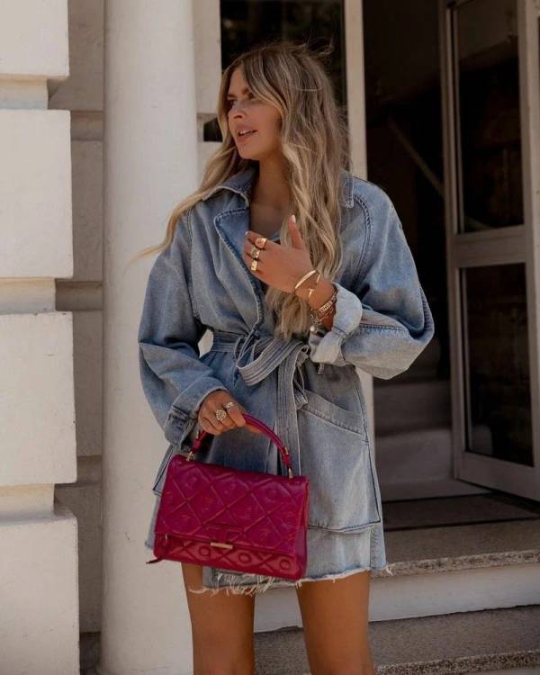 Укорочену джинсову куртку можна сміливо носити восени не тільки зі звичайними джинсами або брюками, а й із трикотажними сукнями, закочуючи рукави у незвичайний спосіб.