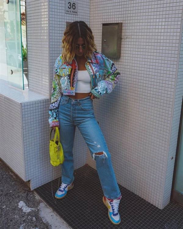 Джинсові куртки з принтами, малюнками та візерунками, як чудовий спосіб виділитися з натовпу, добре виглядають з розслабленими речами та аксесуарами в тон.