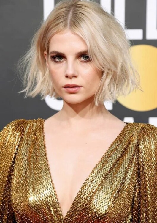 Коротке каре, довжиною до підборіддя – одна з найкращих стрижок для тонкого і не густого волосся. Щоб надати пасмам обсяг, зробіть легку і недбалу хвилю. Для цього найкраще підійде праска. І не забудьте про використання мусу для обсягу перед укладанням.