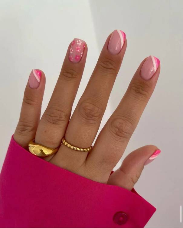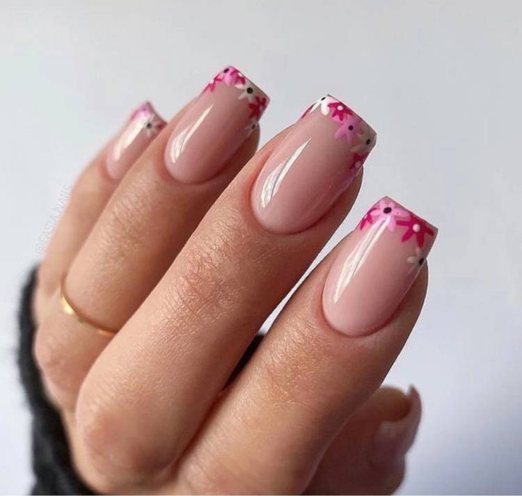 Романтичним натурам ідеально підійде французький манікюр із квітковими мотивами. Це можуть бути як дрібні, мінімалістичні квіточки, так і манікюр, в якому квітковий дизайн зроблений на одній або кількох нігтьових пластинах. Як правило, багато сучасних жінок обирають мінімалізм.