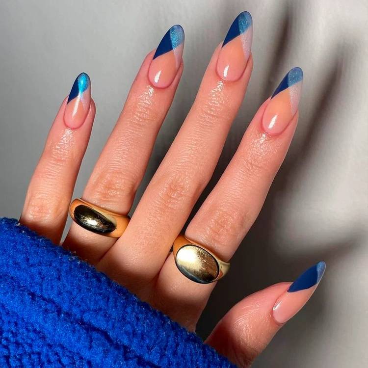 Сині та блакитні відтінки, як одні з провідних модних тонів весняного та літнього сезону, мають особливий попит, а френч з використанням цих відтінків виглядає свіжо та стильно.