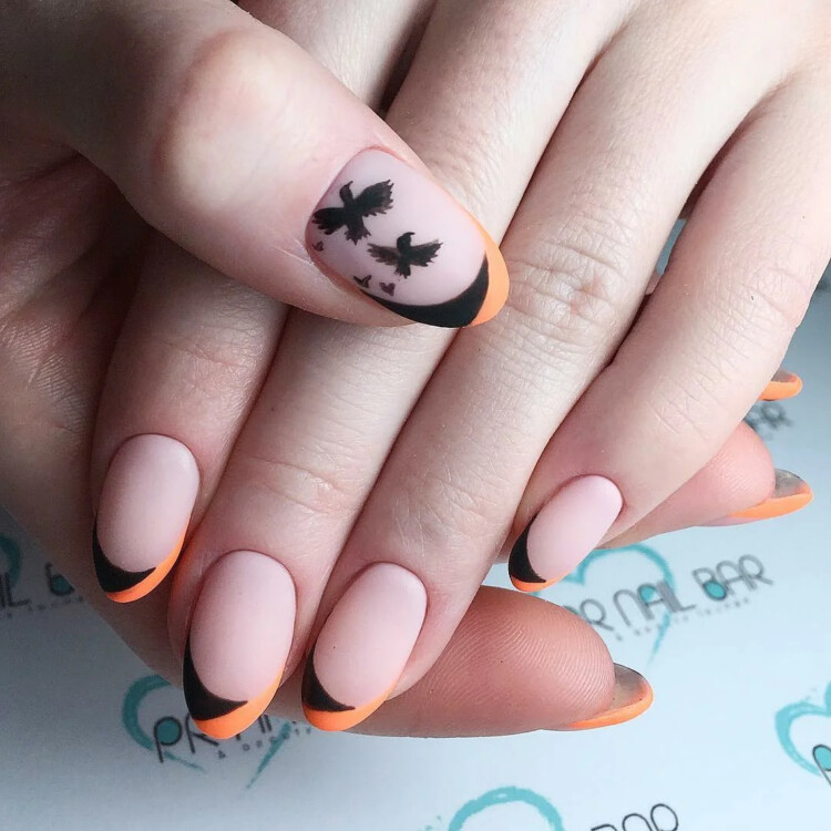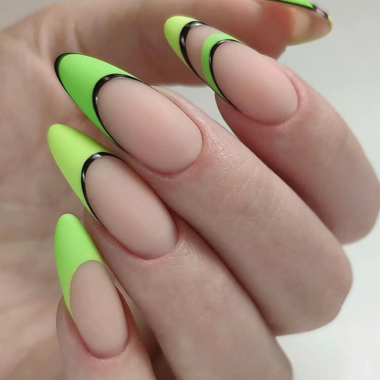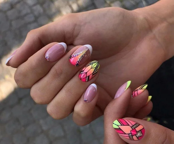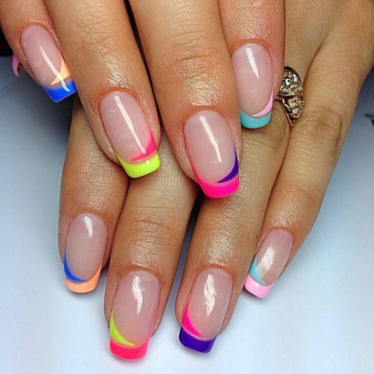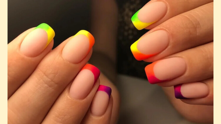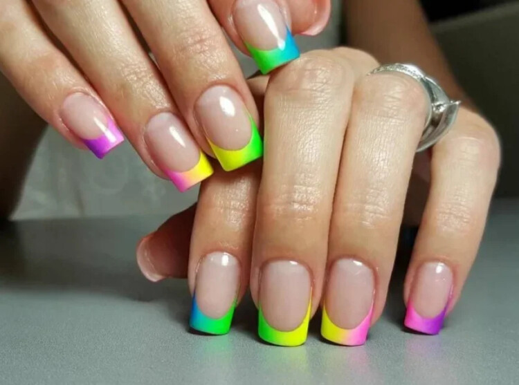 Якщо класичне виконання здається вам недостатньо креативним, спробуйте френч з різними відтінками лунок. Вони можуть бути представлені як ніжними пастельними тонами, так і помітними – неоновими. Але якщо і цього вам мало, скористайтеся матовим топом, що зробить ваші нігтики ще більш чудовим.