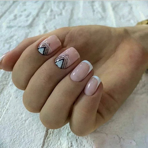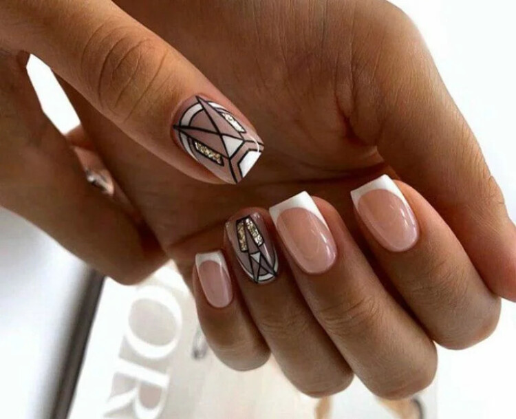 Чому б не перенести тенденцію на геометричні візерунки і на френч? Тут доречними виявляться абсолютно будь-які модифікації – як у вигляді лаконічного графічного орнаменту, так і яскравого і барвистого колор-блоку.