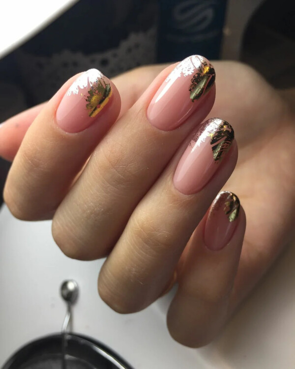 Лунки в такому френчі можуть бути у вигляді відбитків, довільної форми шматочків або смужок. Подібний манікюр ідеально підійде для свят або романтичного побачення.