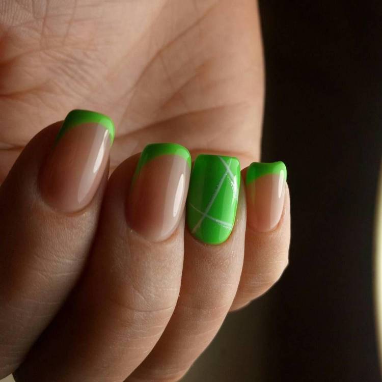 При створенні такого манікюру слід враховувати поєднання кольорів. Ефектно виглядатимуть нігті, якщо френч та покриття інших пальців зроблені одним кольором. Основний яскравий гель-лак краще поєднувати з чорною та білою смугою.
