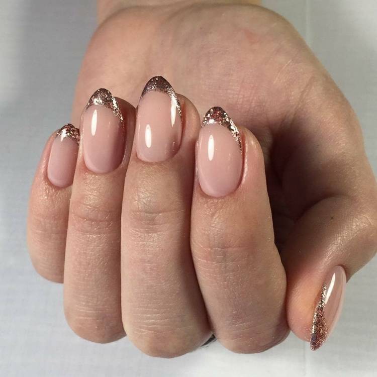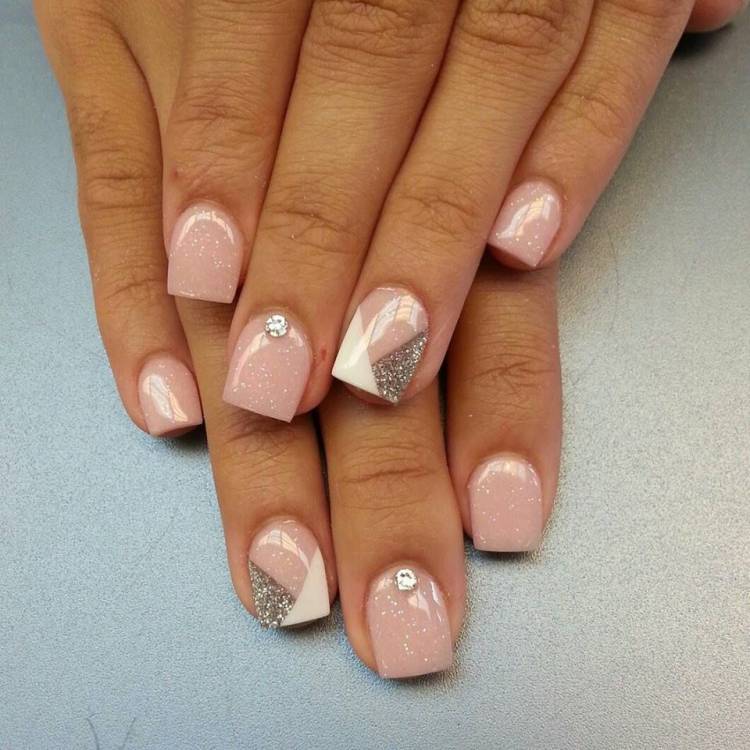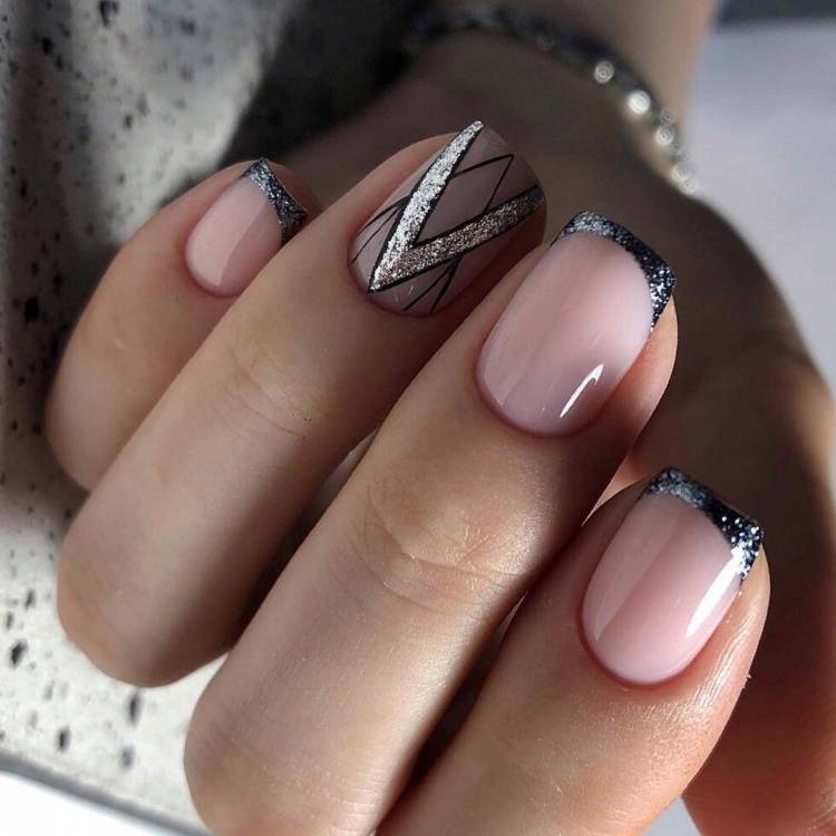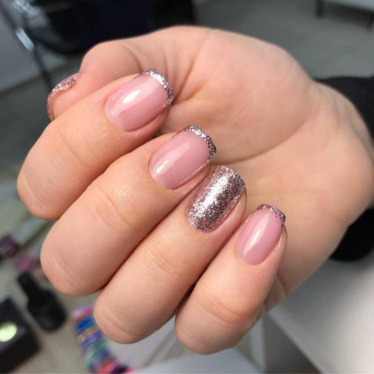 Необов’язково робити френч із блискітками на кожному пальці. Можна поєднувати між собою блискітки та колір. Проте стилісти не рекомендують використовувати кілька відтінків одразу. Краще вибирати пари: білий-срібний, чорний-золотий та ін. Так манікюр виглядатиме естетично привабливіше.