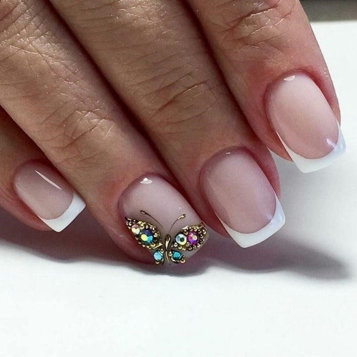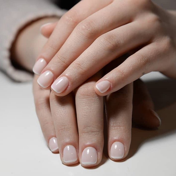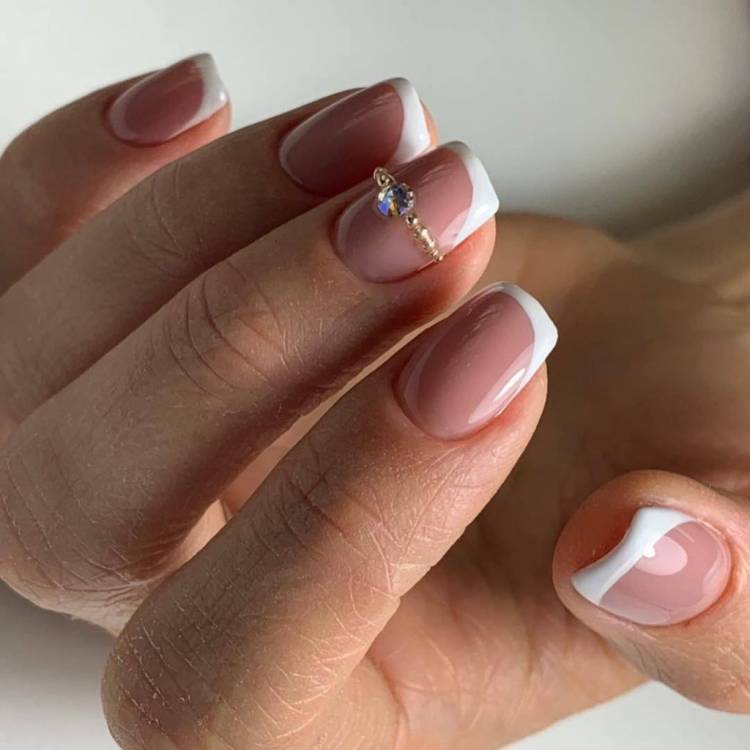 При створенні дизайну білий френч на коротких нігтях в 2022 слід врахувати кілька нюансів, спираючись на фото манікюру. По-перше, необхідно використовувати напівпрозору підкладку або тло натурального кольору. По-друге, лінія не повинна бути товстою навіть на куточках нігтя.