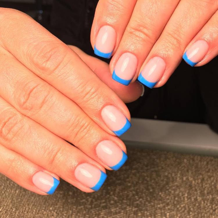 Лінію можна виконувати не лише кольоровим лаком, а й блискітками. Такий варіант френча на короткі нігті знову стане актуальним у 2022 році. Ідеї виконання манікюру можна переглянути на фото. Це дозволить зрозуміти, які кольори подобаються більше.