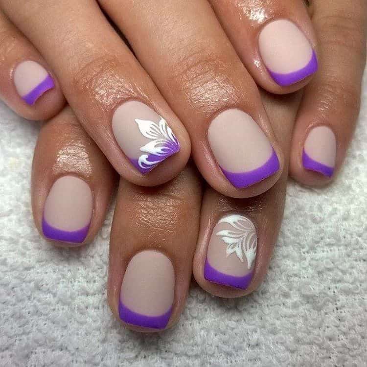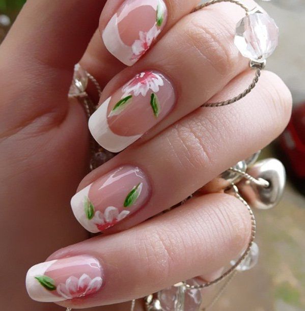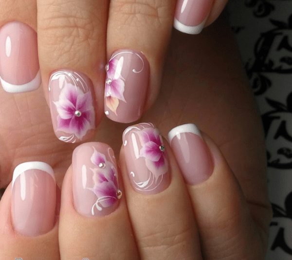 З френчем поєднуються багато варіантів дизайну. Найбільш актуальним у 2022 році варіантом манікюру на короткі нігті буде використання квіткових мотивів із кольоровою смугою по краю нігтя. Для підбору ідеального поєднання можна надихнутись ідеями з фото.