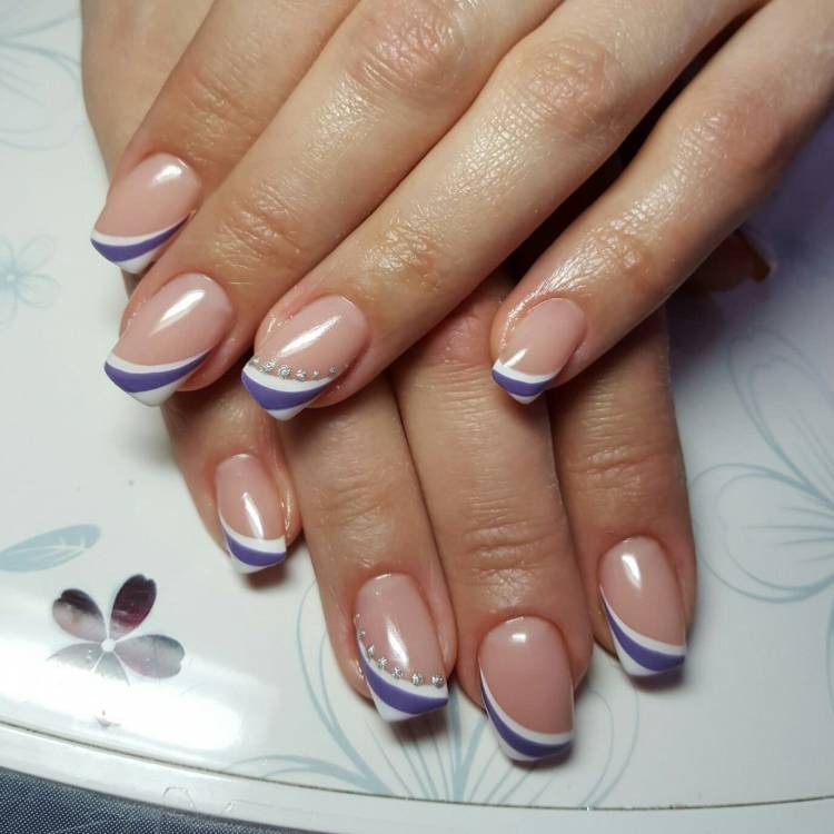 На коротких нігтях квадратної форми геометрія виглядатиме привабливо. Прямі лінії можуть йти як від френча, і з боку кутикули. Ідеальним варіантом стануть вертикальні смужки різної товщини. Їх можна розташовувати з різних боків нігтя чи посередині.