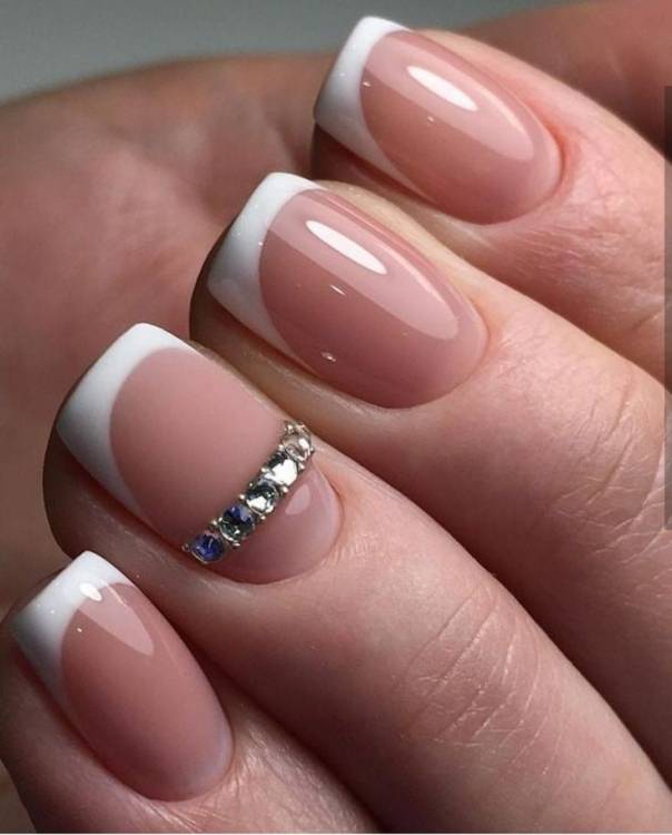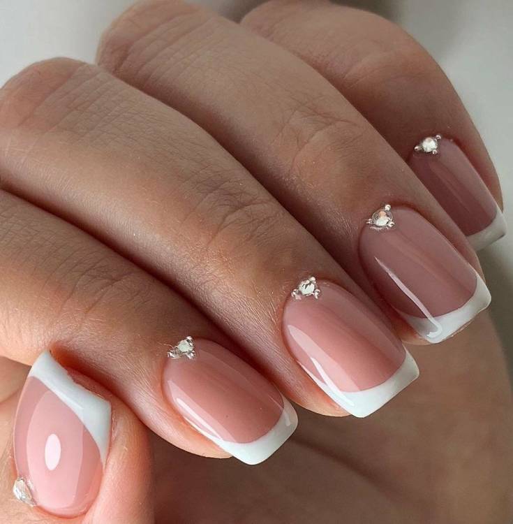 Стрази у поєднанні з френчем є постійною класикою. Кілька років тому цей варіант манікюру був популярним у наречених. У 2022 році він знову повертається до трендів. Тому слід звернути увагу на поєднання страз та лінії по краю нігтя.