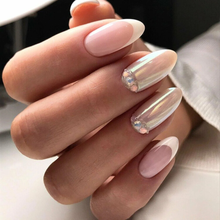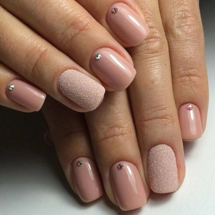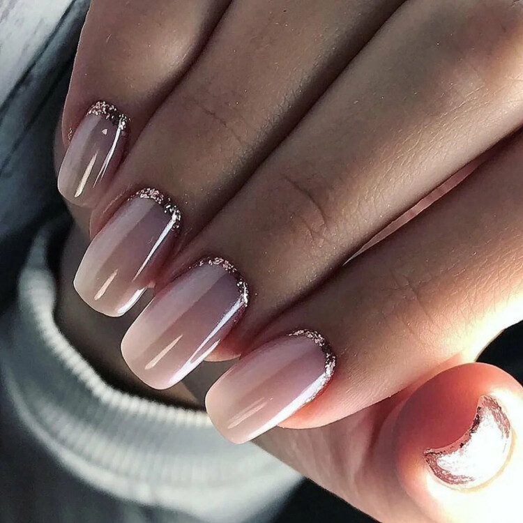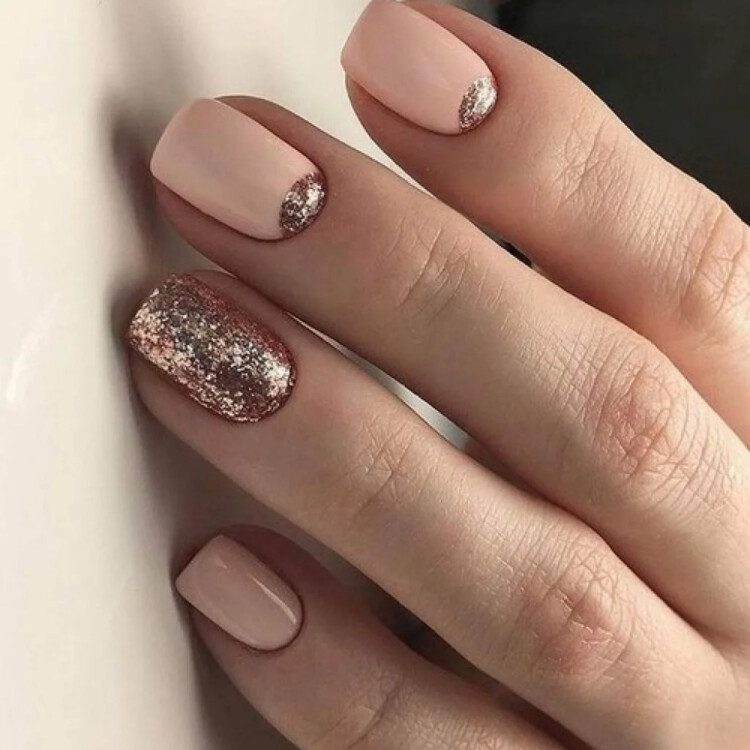 Ідеально підійде звичайний класичний френч. Він не вимагає особливих зусиль для виконання. У вигляді декору можна додати стрази або блискітки. Також варто розглянути нюдові відтінки із застосуванням фольги і втірки.