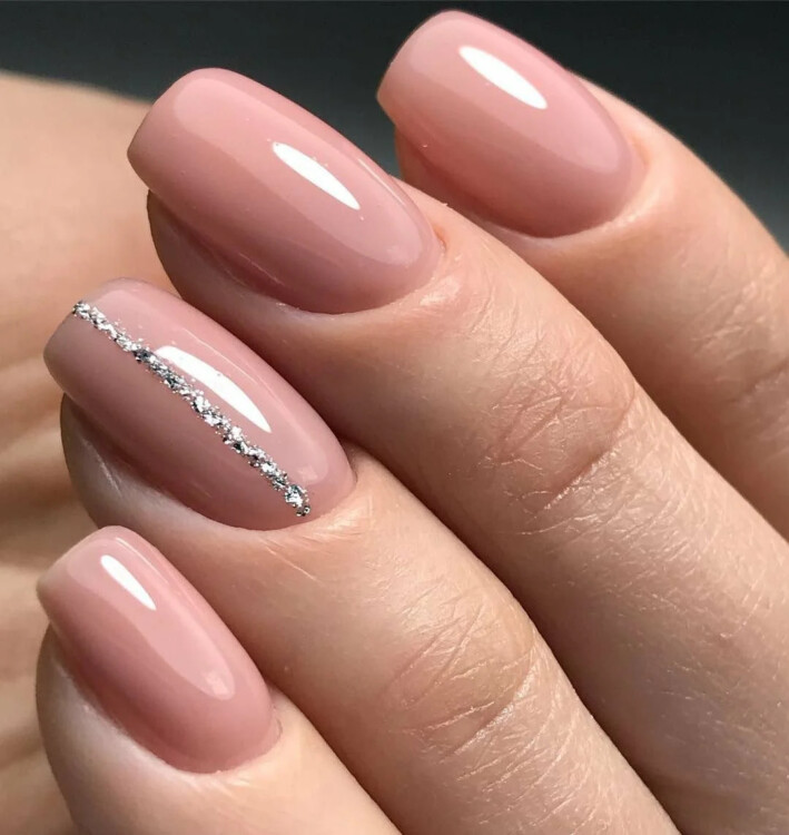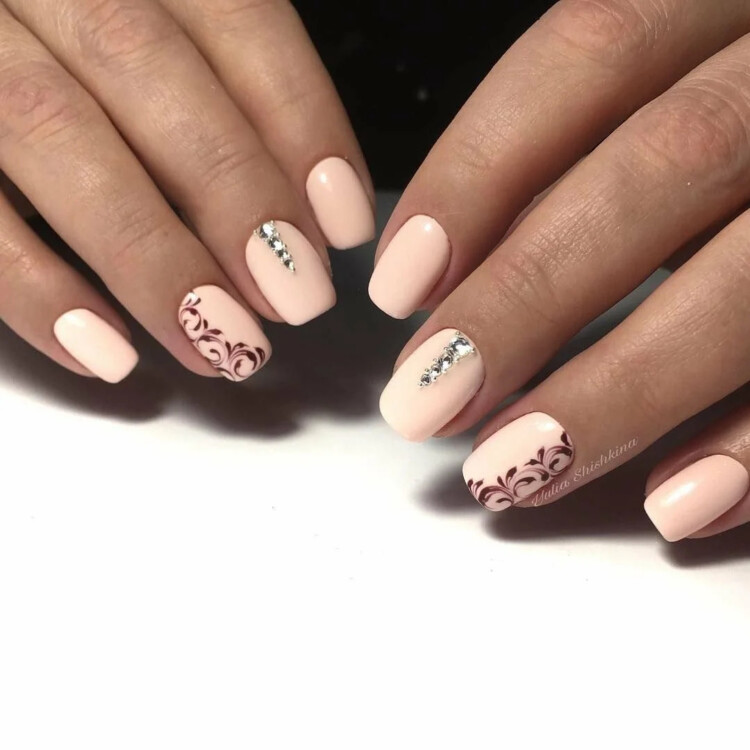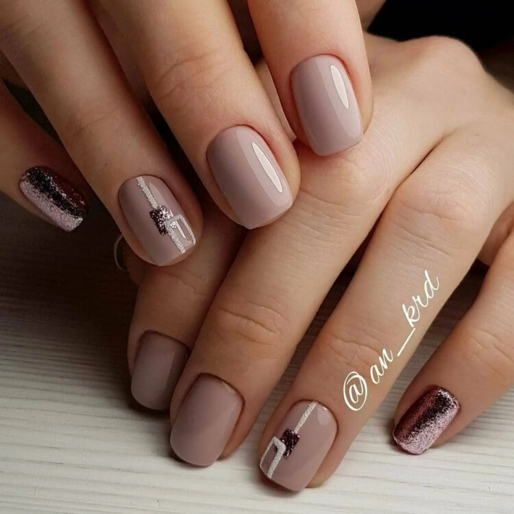 З таким манікюром відмінно буде гармоніювати елемент геометрії. Тонкі чіткі лінії надають строгість і самодостатність. Не варто забувати про ніжний градієнт в нюдових або бежевих відтінках. Додатково можна додати розпис або виконати манікюр в стилі мінімалізму.