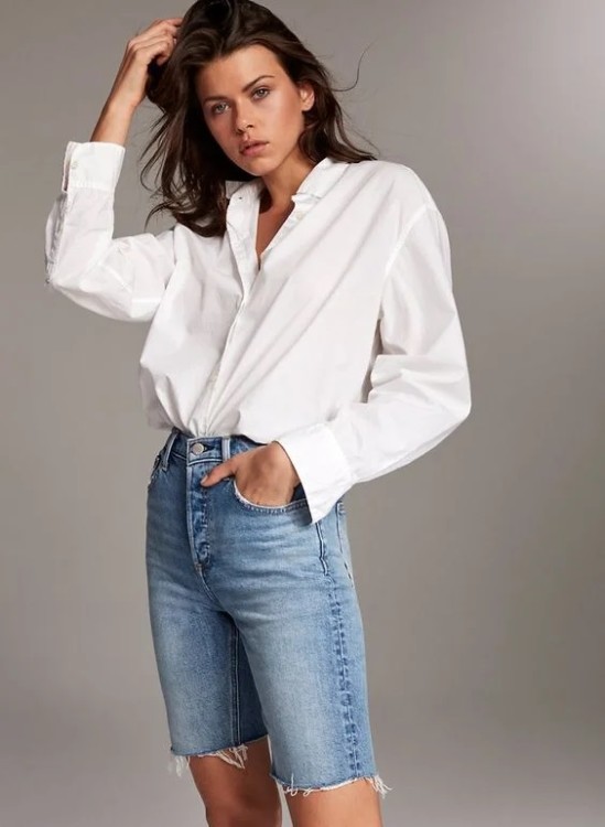 В даному випадку вибираємо шорти подовженого крою. Дуже важливо щоб вони були облягаючі, як велосипедки. Доповнюємо аутфіт класичними човниками.
