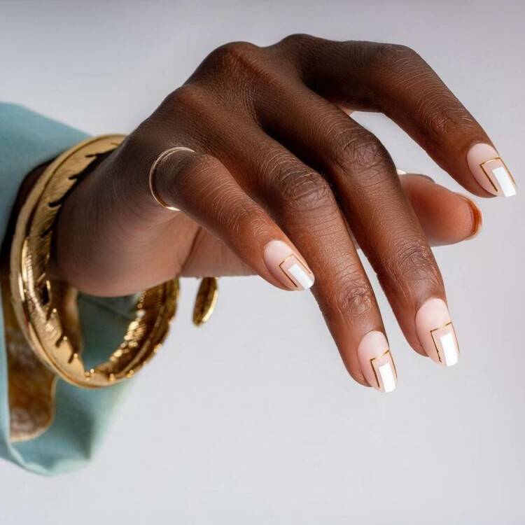 В тренді квадрати, трикутники та ромби. Можна навіть обмежитися однією товстою прямою лінією по центру нігтя. Дивіться, яке креслення вам симпатичніше, і вибирайте стримані відтінки.