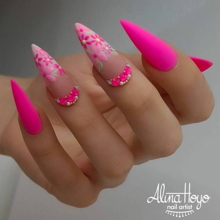• неон – лаймовий і яскраво-рожевий кольори на формі стилет виглядають вишукано.
