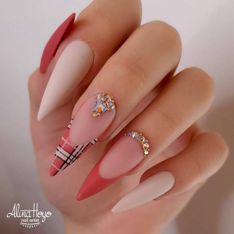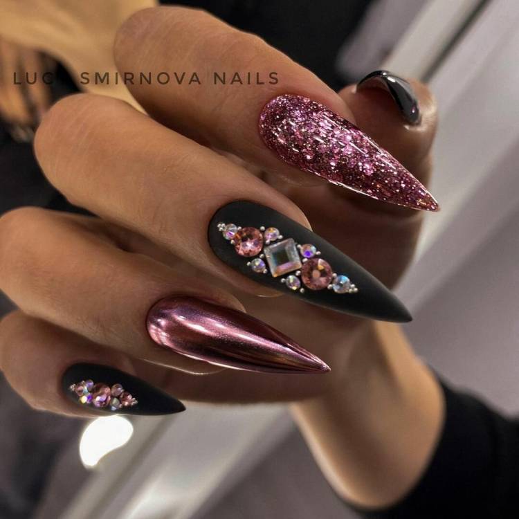 Гострі нігті виглядають ефектно в темному кольорі, але навесні можна пробувати і інші варіанти: