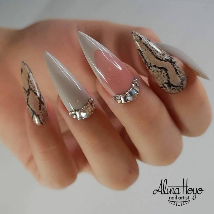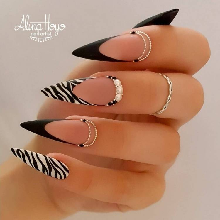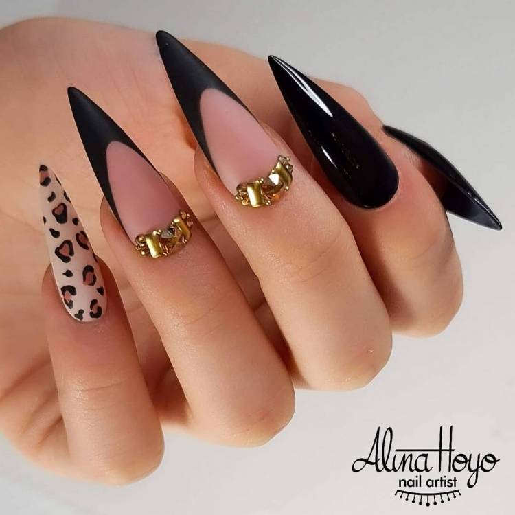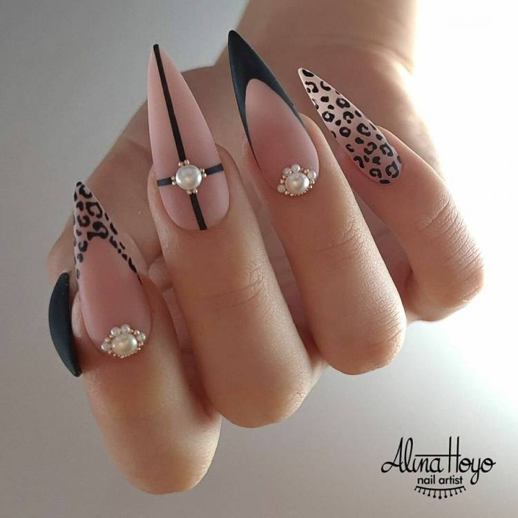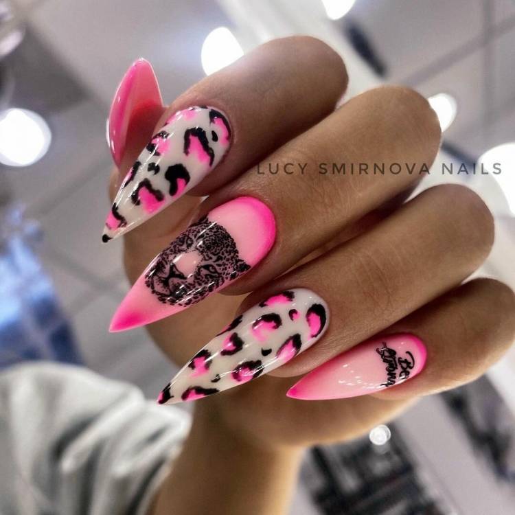 тваринний принт – візерунки з шкури леопарда, тигра або гепарда відмінно виглядають на формі стилет, хижаки – для хижих;