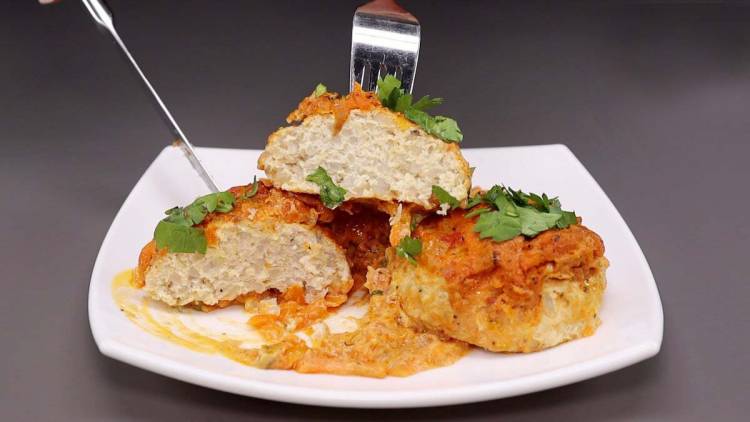 У мене деко розміром 30х40 і висотою 5 см. З даної кількості інгредієнтів виходить 20 штук тефтелей. Поки відкладаємо в сторону і приготуємо соус.