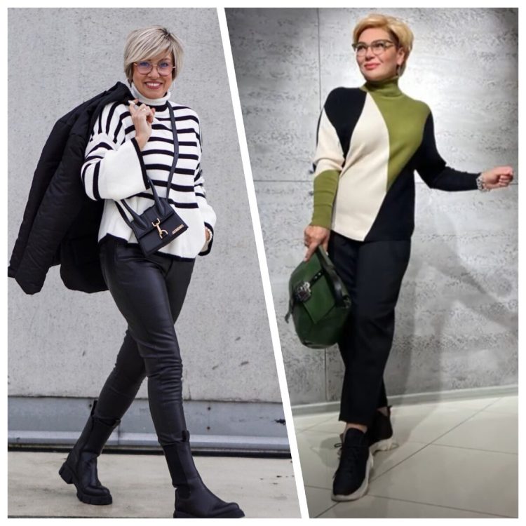 Цього сезону вітається простота, лаконічність та вільний крій, тому светр потрібно вибирати відповідний. Я б рекомендувала зупинитися на базовій моделі з високим коміром, як на фото 1. Це ідеальне поєднання практичності та стилю. Такий светр стане гарною інвестицією в гардероб, оскільки буде актуальним ще далеко не один сезон.