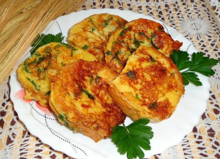 У суміш, що вийшла, макаємо шматочки батона і обсмажуємо з двох сторін на рослинній олії.
