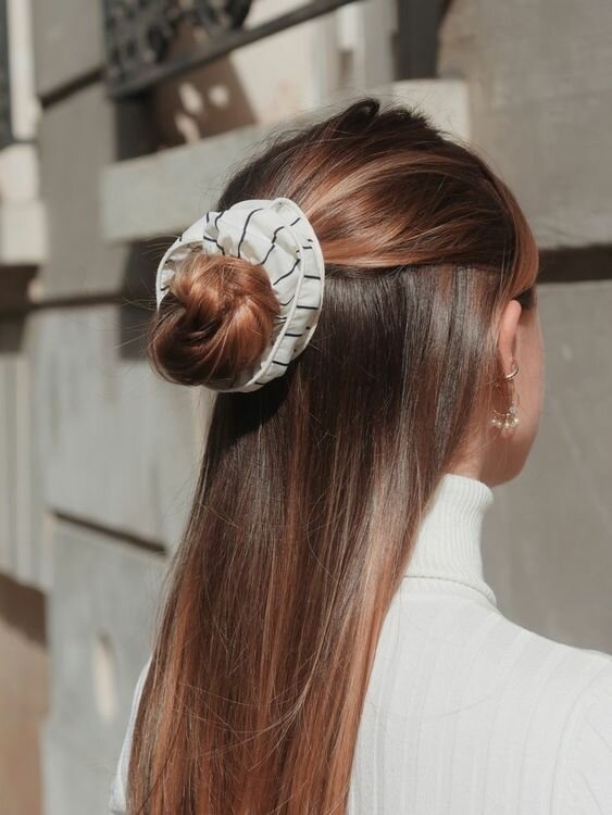 Доповніть свій наряд відповідним аксесуаром. М’яка об’ємна гумка в тон блузці – це дуже стильно!