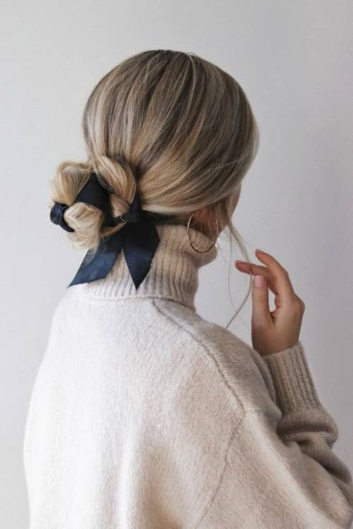 Замість гумки можна використовувати звичайну стрічку. З її допомогою у вас вийде чудовий стильний пучок або низький хвіст у французькому стилі.
