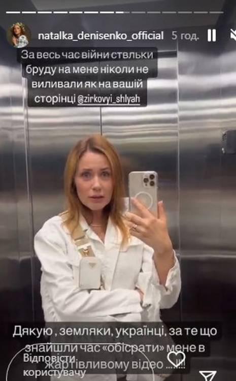 «Я просто в шоці, мені так боляче. Я в розгубленості. За що? Я просто хотіла підняти людям настрій? Я стільки всього роблю. Мій чоловік, бляха, на війні, а мене поливають брудом свої ж люди, українці, мої земляки. Дякую вам» , — у сльозах звернулася Наталка хейтерам.