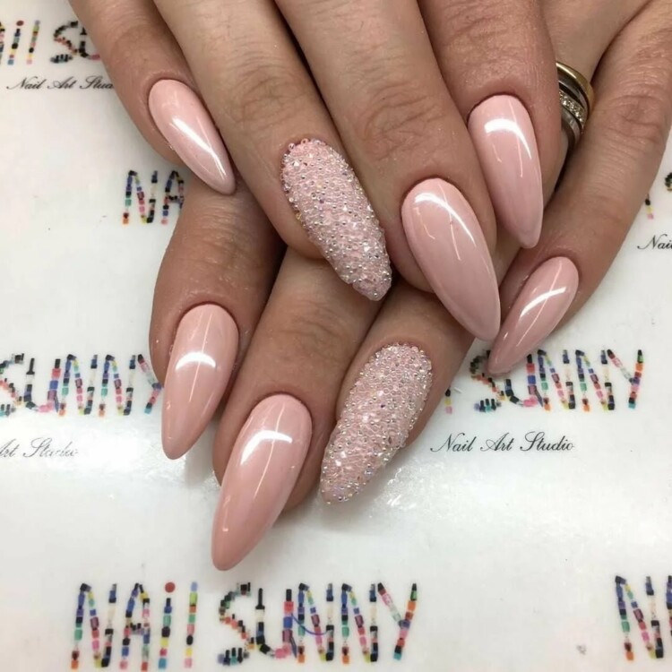 Ідеальне рішення для мигдалеподібної і квадратної форми. Маленькі і не дуже кристалики створять цікавий акцент на нігтики. Розташувати їх можна як на одній нігтьовій пластині, так і на кількох, виклавши нехитрим орнаментом.