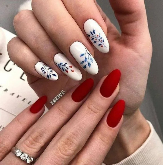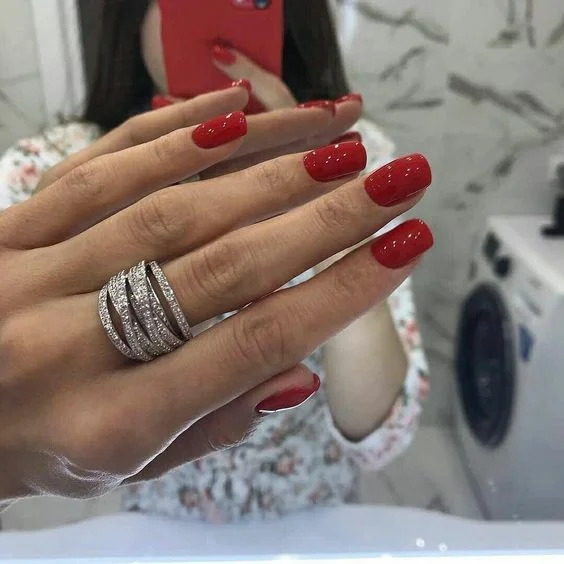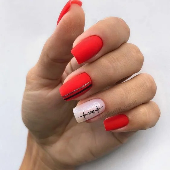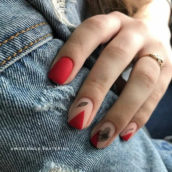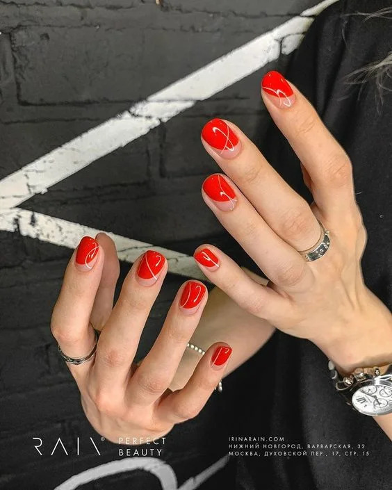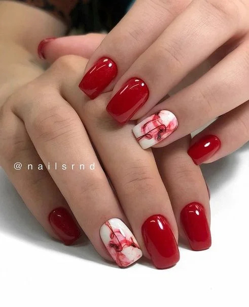 Червоні відтінки красиво поєднуються з білим, чорним, сріблом, золотом, бежевими і нюдовими відтінками. Користуючись цими комбінаціями і трендами в манікюрі, можна придумати свій дизайн або скористатися вдалими варіантами з Інтернету.