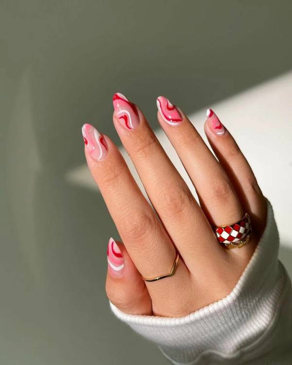 Червоний – традиційно вважається головним кольором Дня всіх закоханих, тому особливу увагу радимо звернути саме на дизайни в цьому кольорі. В цілому, червоний – досить самодостатній колір, тому якщо до експериментів ви не тяжієте, можна обмежитися однотонним покриттям. Тим більше, що у TikTok вірусується теорія про те, що червоні нігті роблять жінку привабливішою. Чим не привід перевірити?