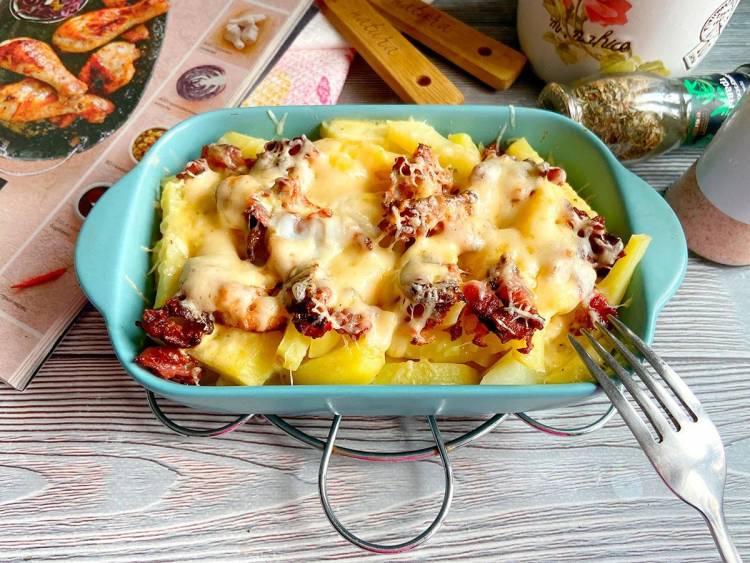 Швидка та ситна страва, яка чудово підійде для подачі на вечерю у родинному колі. Бекон надає картоплі чудовий копчений аромат.