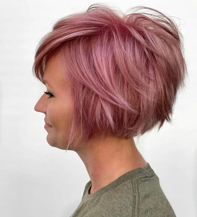 Коротка стрижка, поєднана з технікою каскаду, підходить жінкам 40-50 років і старше. Завдяки обробці пасом, збільшується обсяг всієї шевелюри і значно спрощується укладання.