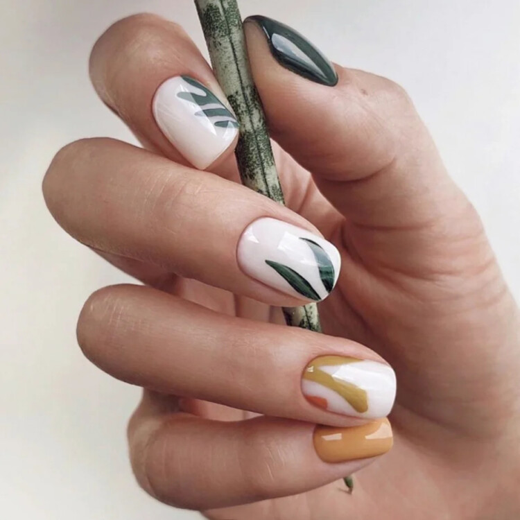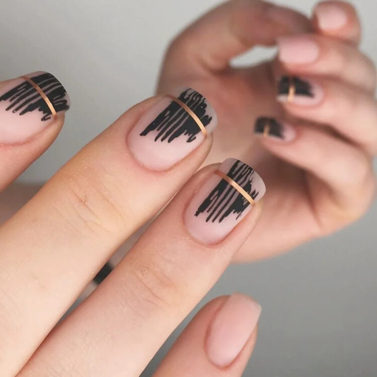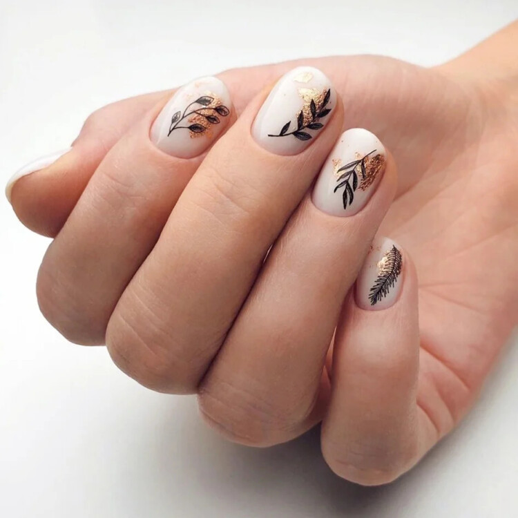 Якщо у вашій душі все ще літо, а улюблений нейл-арт – гілочки, то для вас є стриманий і романтичний дизайн у вигляді тонких ліній, листочків і чорних кольорів. Манікюр неймовірно простий, але прикрасить нігті будь-якої довжини і форми.