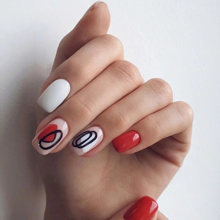 Червоний колір в манікюрі не старіє вже багато років, так і в 2020 році червоні нігті знову в списках трендів. Восени в моді буде не тільки класичний червоний, але і безліч його відтінків: бордовий, винний, червоно-рудий. Якщо говорити про новинки дизайну червоних нігтів, то тут буде популярне не суцільне однотонне покриття, а всілякі варіанти з незвичайним дизайном. Наприклад, складні візерунки в поєднанні з чорним і білим кольором, заливка половини нігтя, місячний манікюр, омбре і навіть червоний френч. Поєднання червоного і чорного в манікюрі виглядає дуже ефектно і завжди звертає на себе максимум уваги.