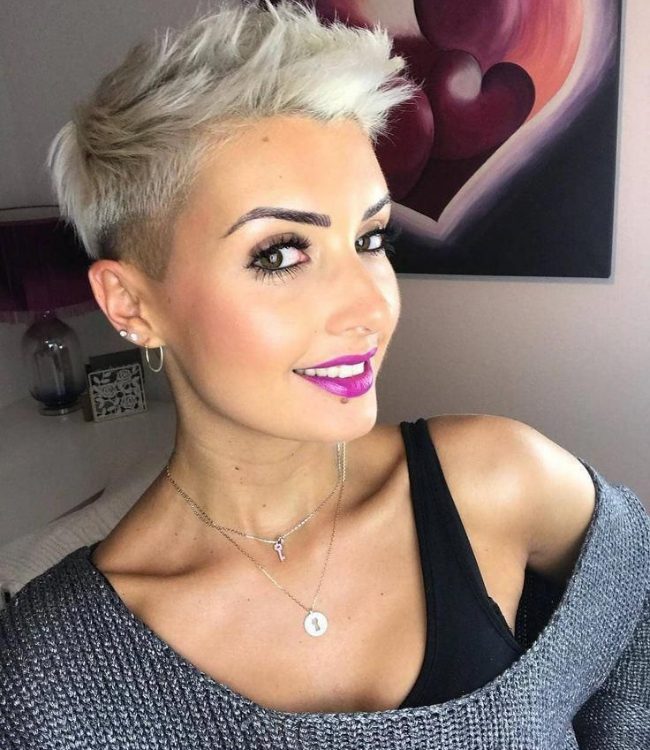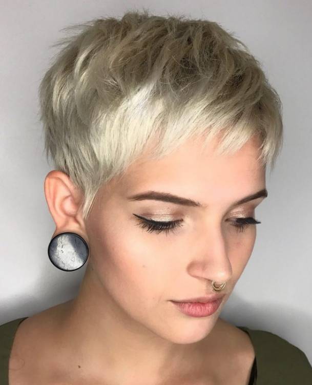 Ця універсальна стрижка ідеально виглядає не тільки на молоденьких дівчатах, а й на жінках після 40 років і більше. Для неї характерні короткі, трохи скуйовджені пасма в області скронь, верхівки і потилиці. За рахунок цього образ виходить зухвалим, стильним, сміливим.