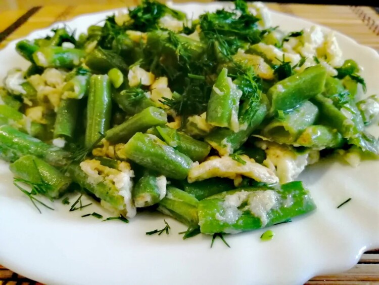 Сьогодні відкривши морозилку, побачила пакет зеленої квасолі, який був куплений ще під час карантину. Не можу сказати, що така вже велика шанувальниця ЗСЖ, але стручкова квасоля з яйцями виходить дуже смачною, а про користь і говорити не доводиться. Стручкова зелена квасоля є дуже низько калорійним продуктом. При цьому в ній багато корисних речовин: калій, магній, залізо, цинк, йод, селен. Таблиця Менделєєва у відкритому доступі). Також ця квасоля нормалізує роботу кишечника і корисна для нервової системи